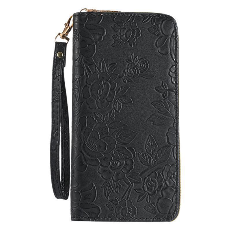 花彫り柄 レディース長財布 小銭入れ 薄目 男女兼用